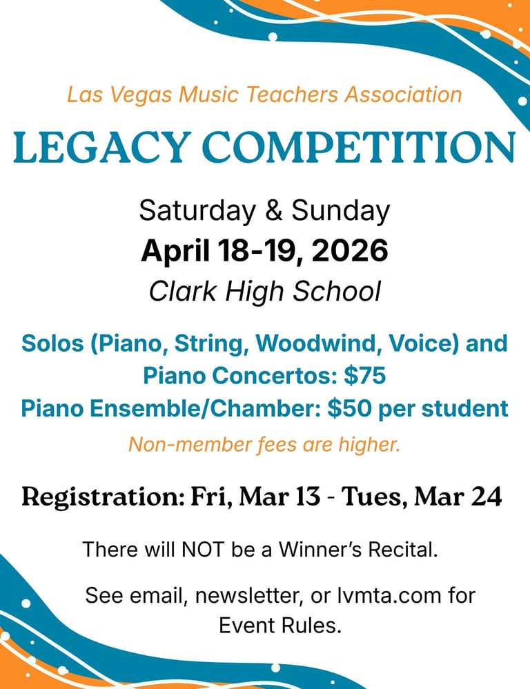 Fees: $75 for Solos (Piano, String, Woodwind, Voice) and Piano Concertos
